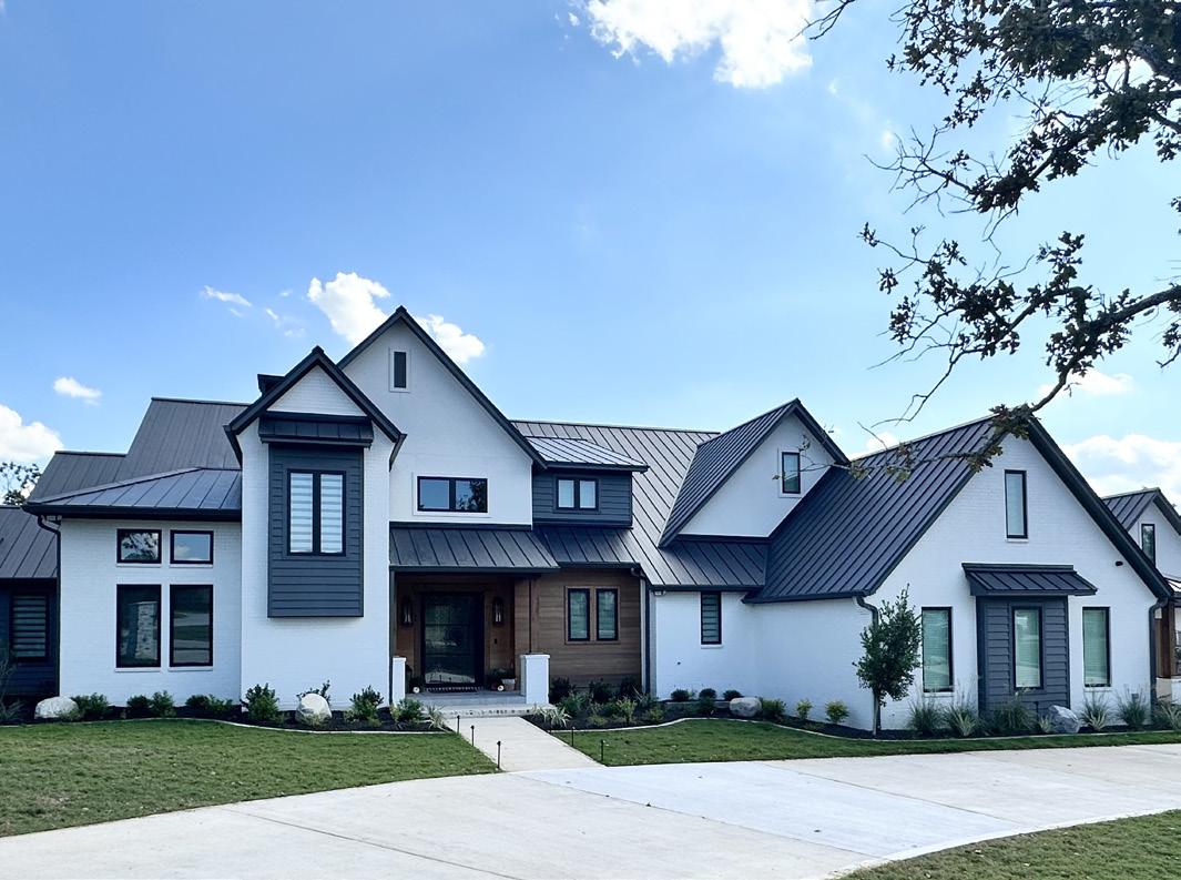 Gorgeous Modern Transitional Home featuring white exterior, dark gray accents along with touches of cedar elevating the exterior design to make a grand impact at first sight. There are so many beautiful modern touches and upgrades that you must see this stunning custom home in person. Greeted by a uniquely designed iron pivot door, you immediately know this home is going to be special. This new build boasts attention to every small detail with features such as: white oak vaulted ceilings, tiled fireplace, custom designed chef’s dream kitchen, foyer/stairwell with custom trim work, custom cabinetry offering an abundance of storage, home bar for entertaining, outdoor summer kitchen, dreamy backyard oasis, and so much more. If you can think of it, this home probably has it.