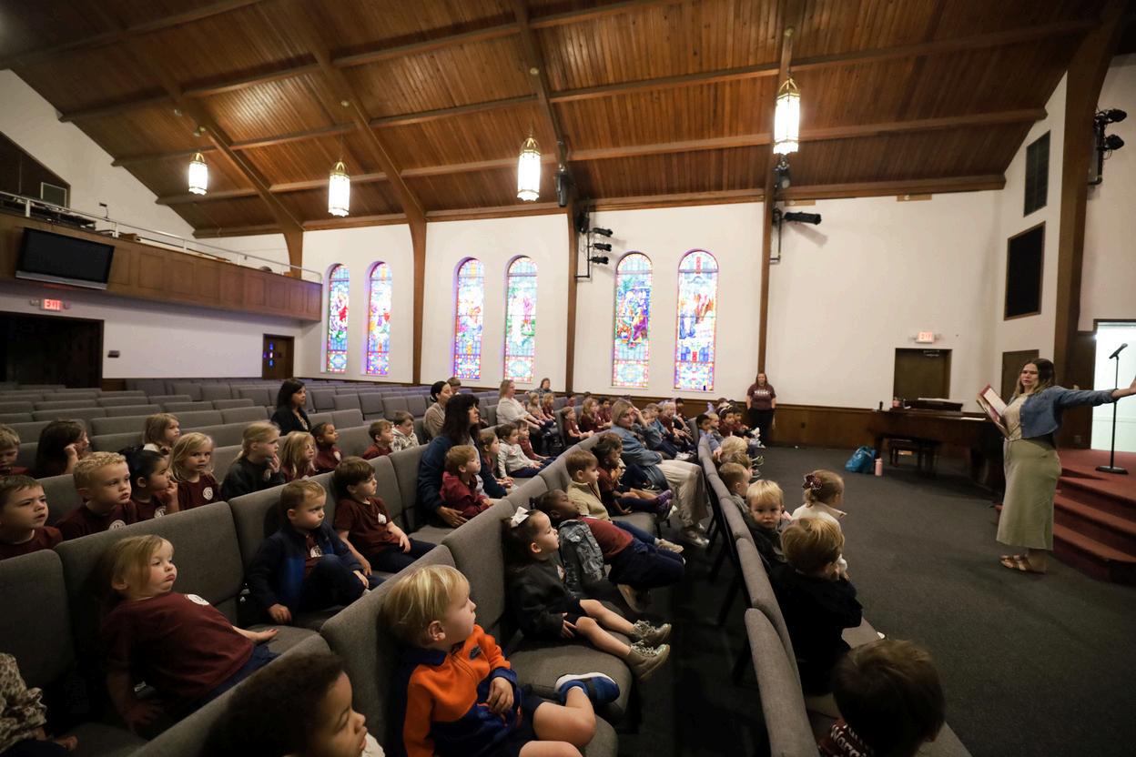 Our curriculum is enriched with instruction in art and music, trips to our school library, and fun weekly chapel services specifically designed for preschoolers.