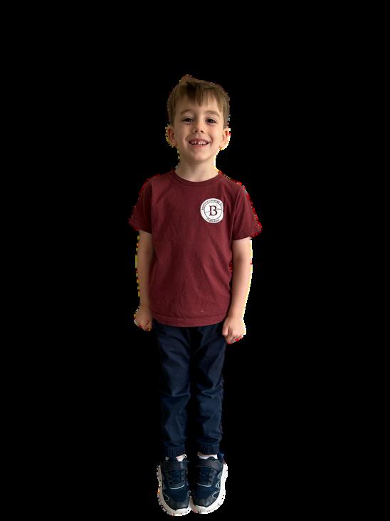 Boys: White Oxford Shirt with Logo + Khaki pants + Burgundy/GrayPlaidTie.