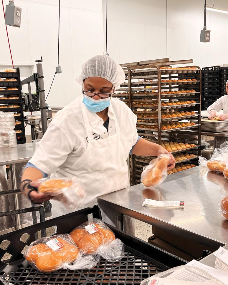 Union members produce bread, rolls, cookies, brownies, chunky breads, hand rolled and cut cinnamon rolls, specialty cakes and a vast array of other sweet treats at the bakery to ship out to 18