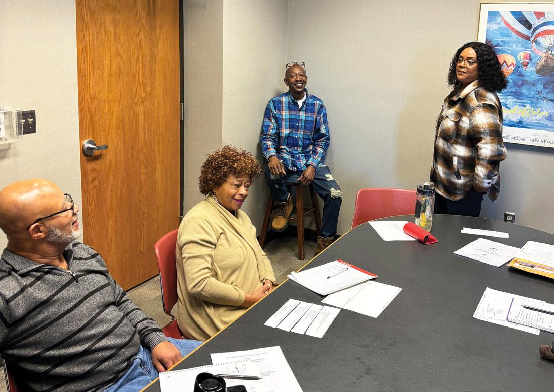 Tim Lucero, Tobi Goodrich and Art Duran writing a mock grievance during the group exercise.
