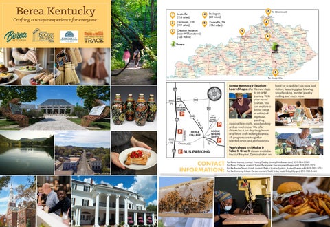 For Berea tourism, contact: Nancy Conley (nancy@visitberea.com) 859-986-2540 21 For Berea College, contact: Susan Buckmaster (buckmasters@berea.edu) 859-985-3193 For the Boone Tavern Hotel, contact: Patrick Huston (patrick_huston@berea.edu) 859-985-3705 For the Kentucky Artisan Center, contact: Todd Finley (todd.finley@ky.gov) 859-985-5448