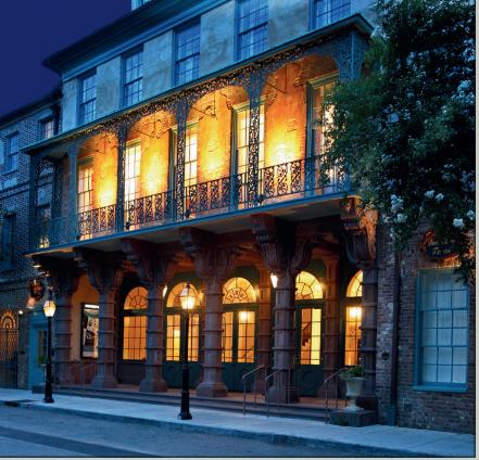 The original Dock Street Theatre was probably destroyed by the Great Fire of 1740 which destroyed many of the buildings in Charleston’s French Quarter. In 1809, the Planter’s Hotel was built on this site and in 1835 the wrought iron balcony and sandstone columns of the Church Street facade were added. A number of notable persons worked and patronized the Planter’s Hotel including the noted 19th Century actor Junius Brutus Booth (father of Edwin and John Wilkes Booth). Robert Smalls, an African-American Civil War hero, who stole a steamboat in the harbor and sailed it out past the Confederate-held Ft. Sumter and turned it over to the blockading Union Fleet, served as a waiter in the hotel’s dining room prior to the war. Charleston’s famed Planter’s Punch was first introduced here.