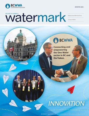 Watermark is made possible by the companies below who convey their important messages on our pages. We thank them for their support of BCWWA and its publication and encourage you to contact them when making your purchasing decisions. To make it easier to contact these companies, we have included the page number of their advertisement, their phone number, and, where applicable, their website.