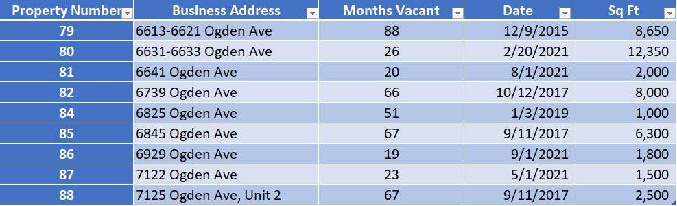 • 6613-6621 Ogden Ave- 8,650 SF.
