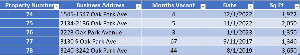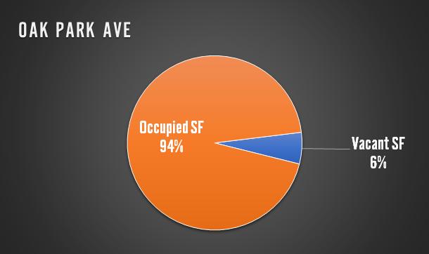 The Oak Park Corridor is performing better than we would expect compared to the overall community. With 157,542 square feet of commercial space, Oak Park has approximately 9,196 square feet of vacant space, which is the least amount of any of Berwyn’s corridors. This 5.84% is the 2nd lowest rate in the community overall.