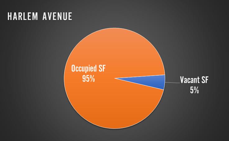 The Harlem Corridor is one of the best performing corridors in the overall community. With 299,814 square feet of commercial space, Harlem has only 14,300 square feet of vacant space. This 4.77% is better than the overall commercial vacancy of 11.44%