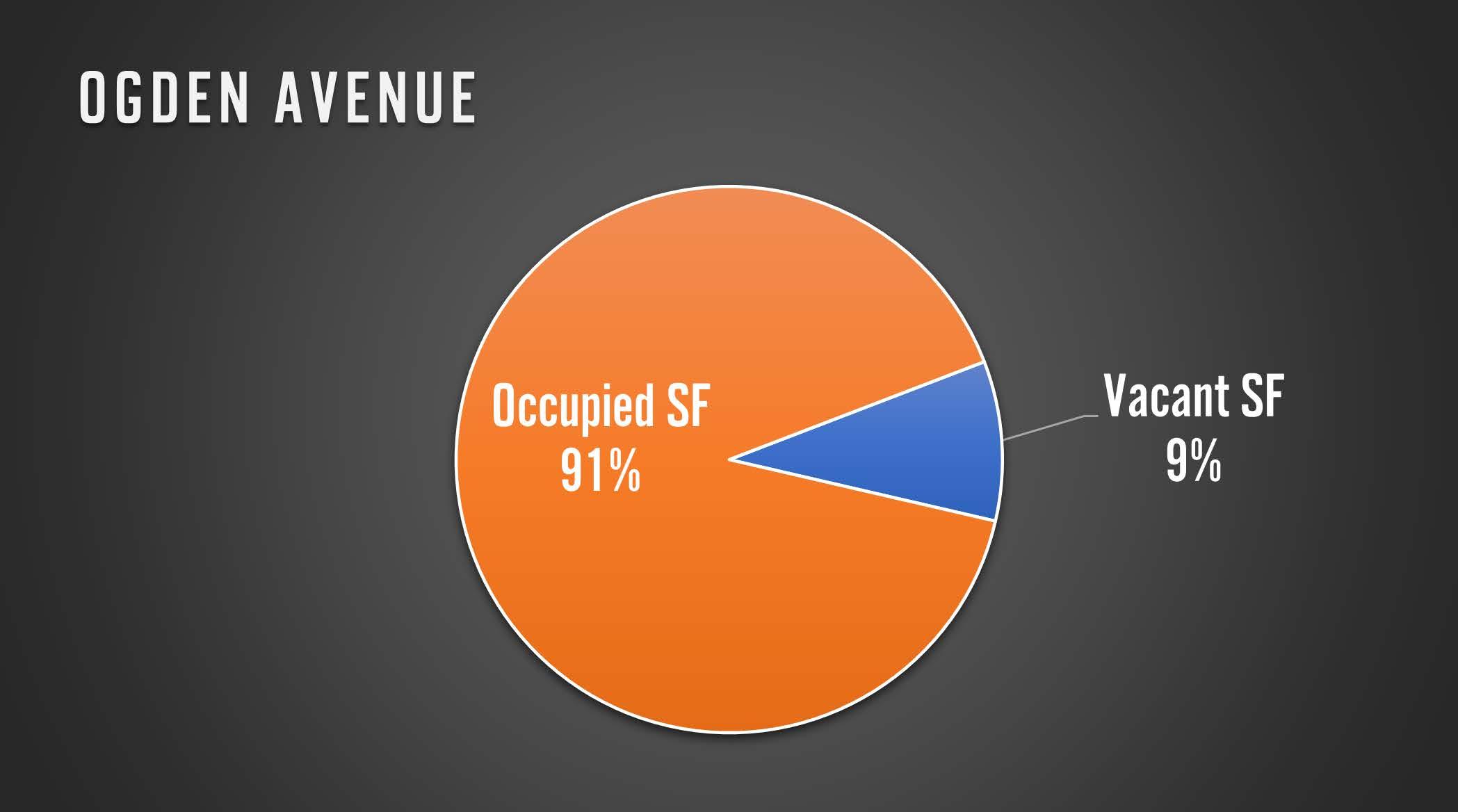 The Ogden Corridor is the second largest commercial corridor in the community, and the single best performing in Berwyn. With 491,337 square feet of commercial space. Ogden has approximately 44,600 square feet of vacant space, giving a vacancy rate of 9.08%