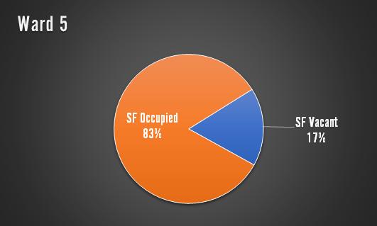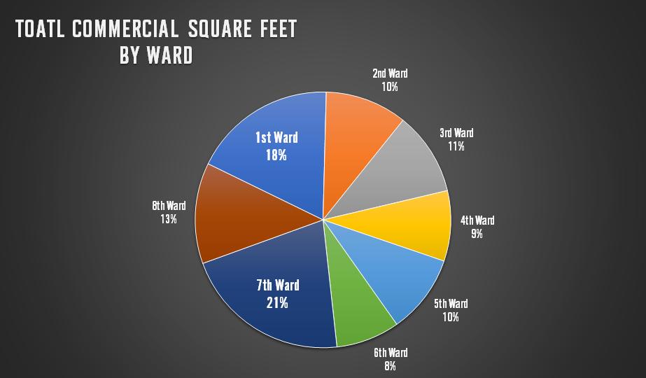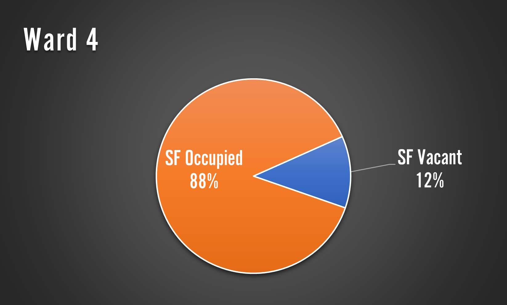Ward 4 is on par compared to the overall community. With 254,893 square feet of commercial space, Ward 4 has approximately 36,860 square feet of vacant space. This 14.46% is higher than the overall 11.44%