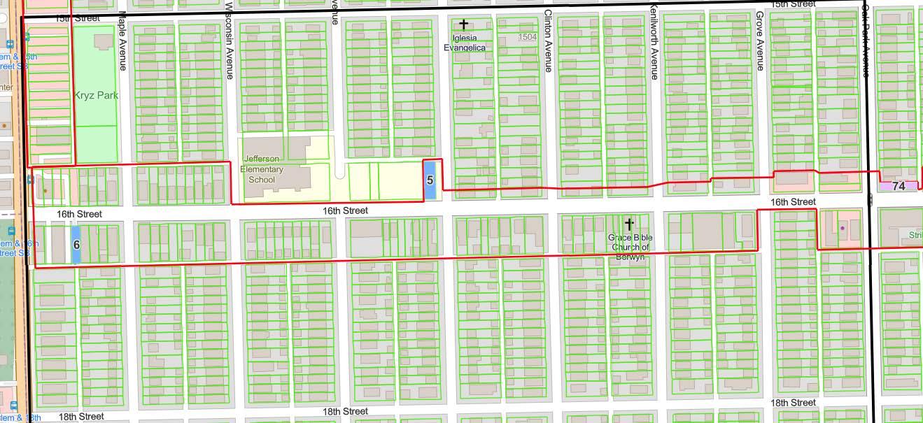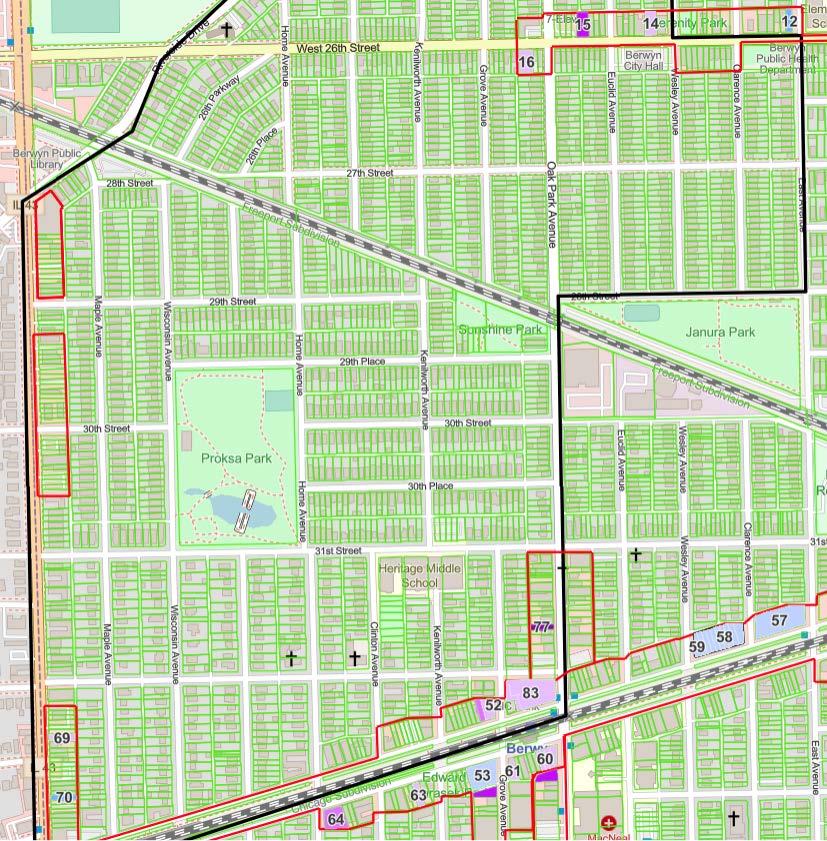 Sources: Ward Boundaries and City Block Outlines - City of Berwyn