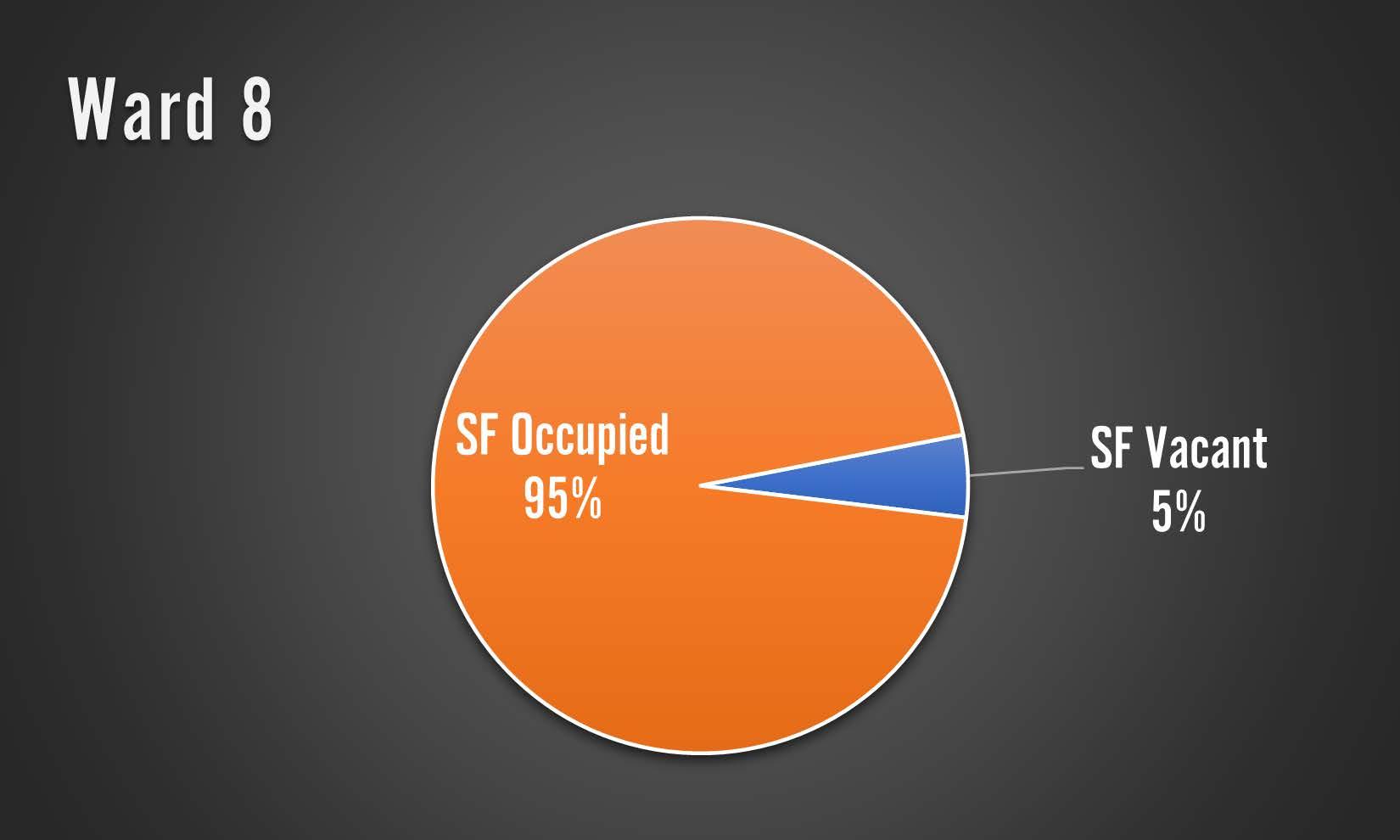 Ward 8 is performing better than we would expect compared to the overall community. With 365,031 square feet of commercial space, Ward 8 has approximately 21,903 square feet of vacant space. This 6.00% vacancy rate is much better than the 11.44% for Berwyn.