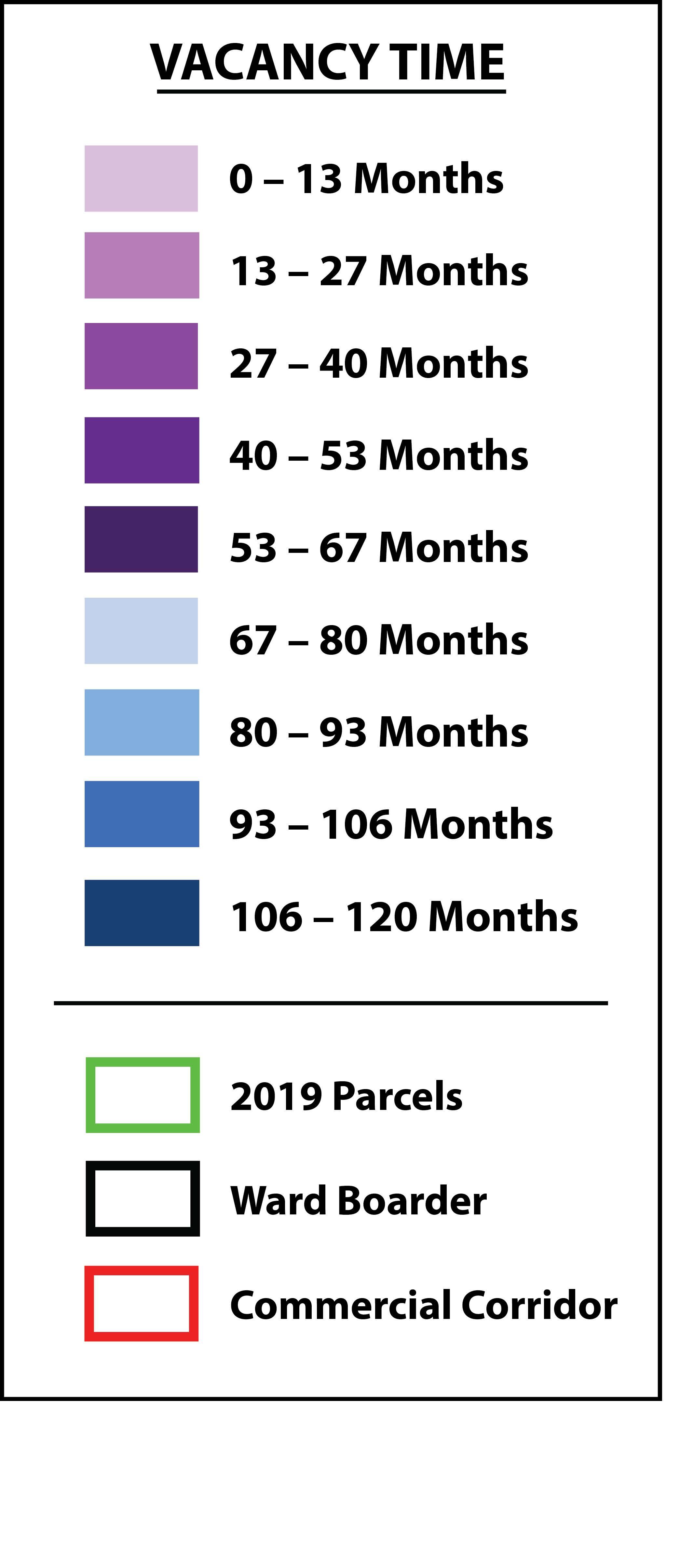 The BDC has also color coded our maps to indicate time vacant. The darker the shade, the longer the property has remained vacant.