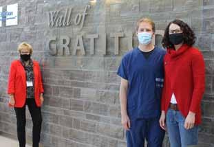 Joan Simon, BDHF Executive Director is joined at the Wall of Gratitude by Dr. Kevin Tyler, BGH Radiologist and his wife, Dr. Melissa Tyler. Dr. Kevin Tyler and Dr. Melissa Tyler donated $1,000 in support of the Annual Appeal.