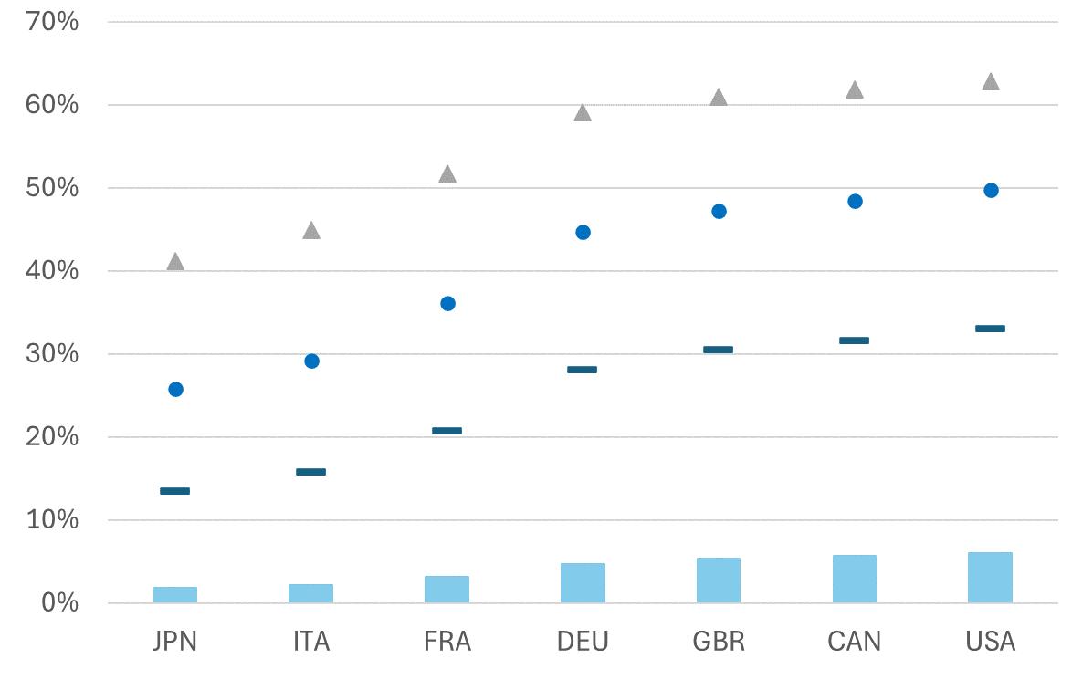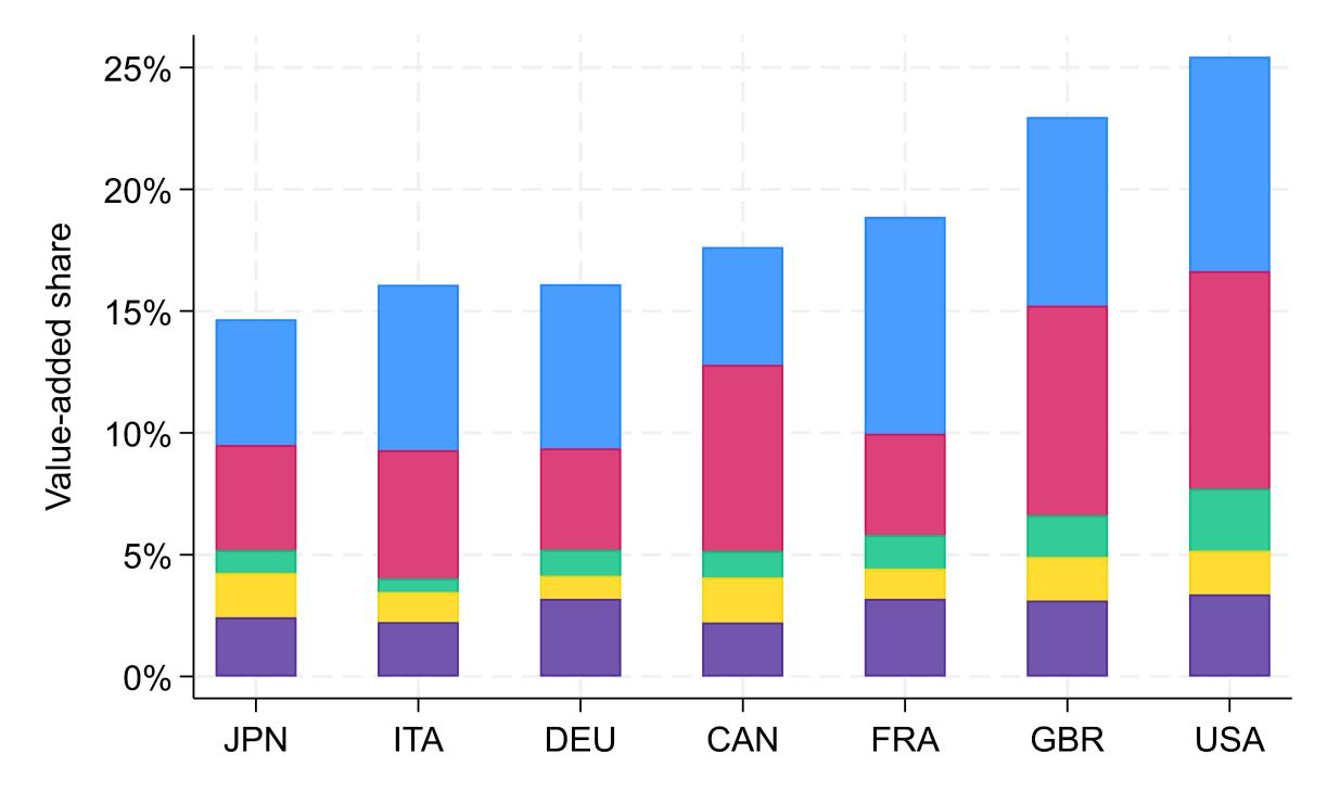 2. Exposure: AI strongly benefits a few sectors, whose importance varies across G7 economies