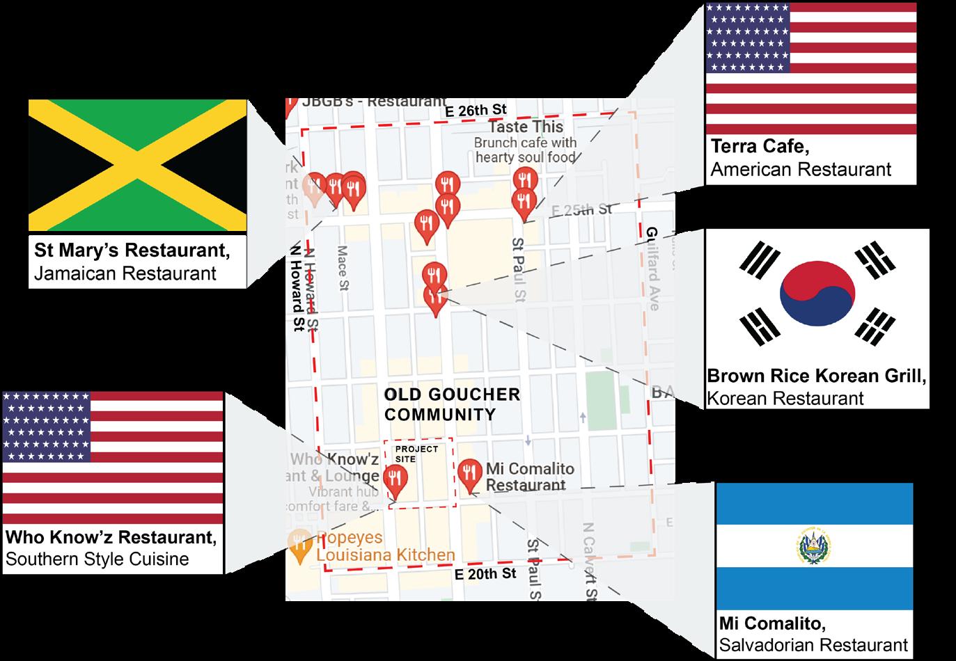 COMMUNITY RESTAURANTS: Various types of restaurants cane be found throughout the Old Goucher community.