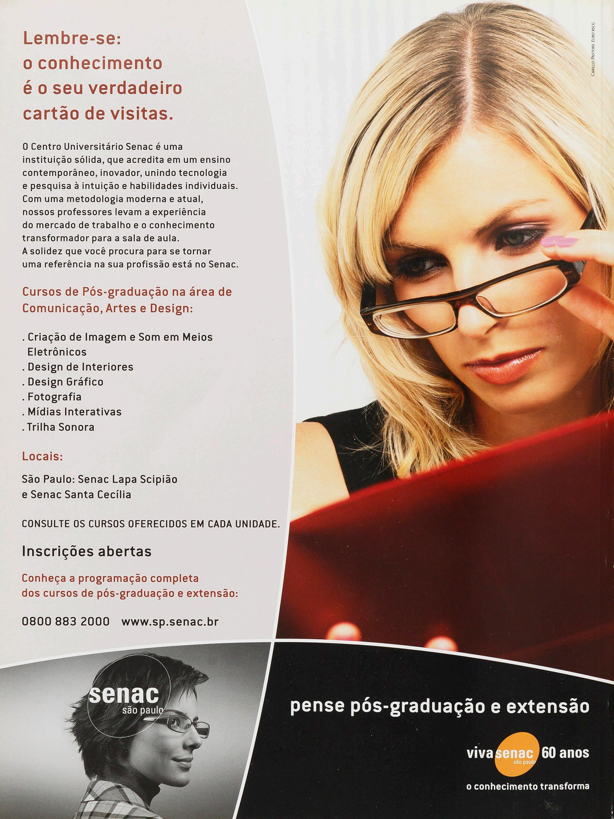 Conheça a programação completa dos cursos de pós-graduação e extensão: 0800 883 2000 www.sp.senac.br