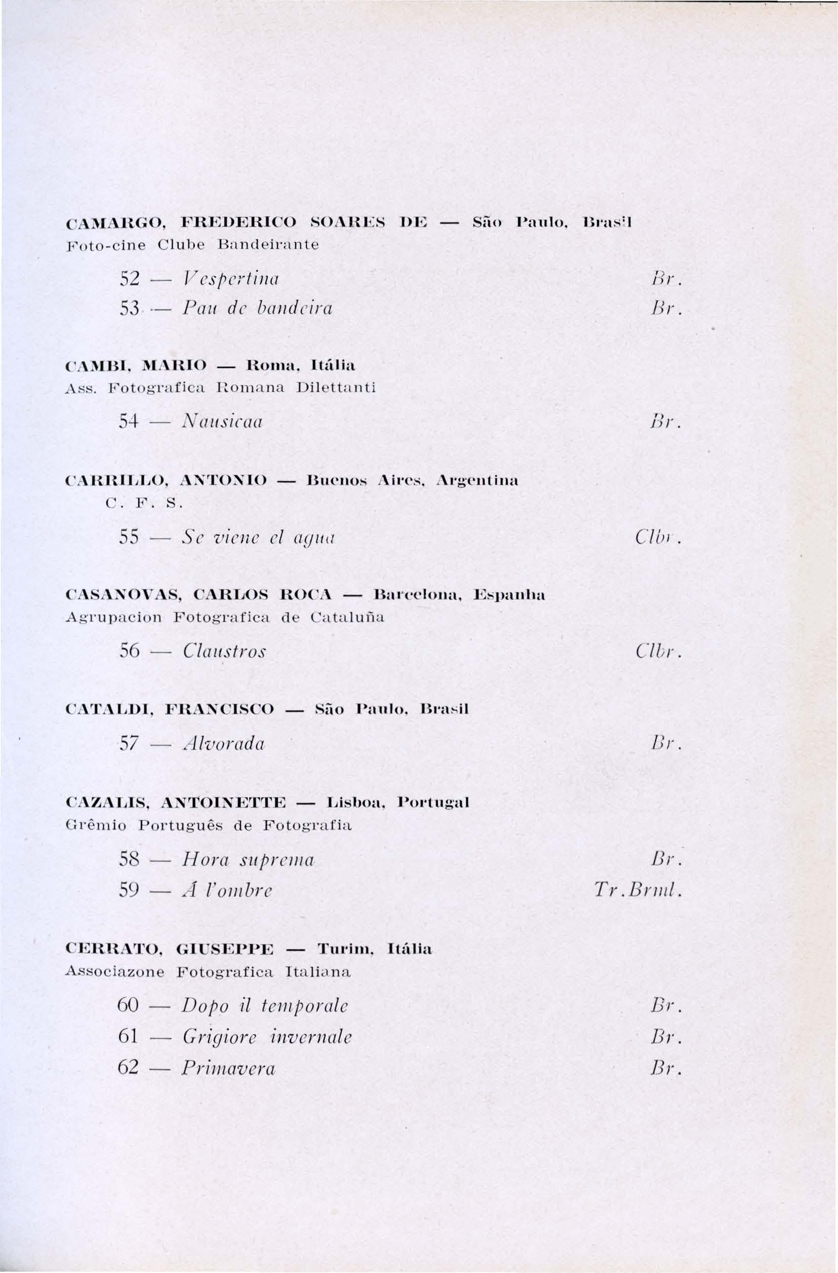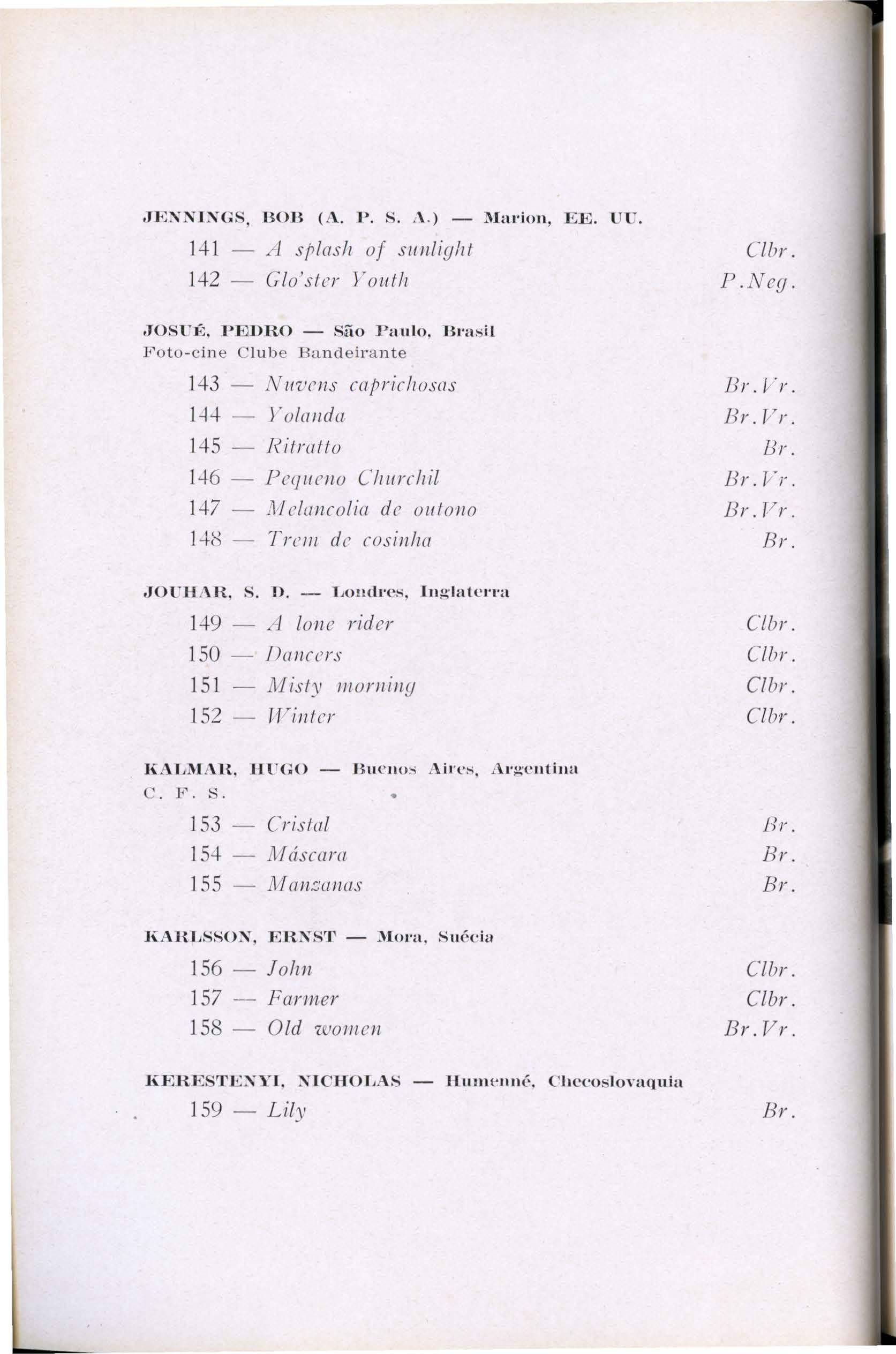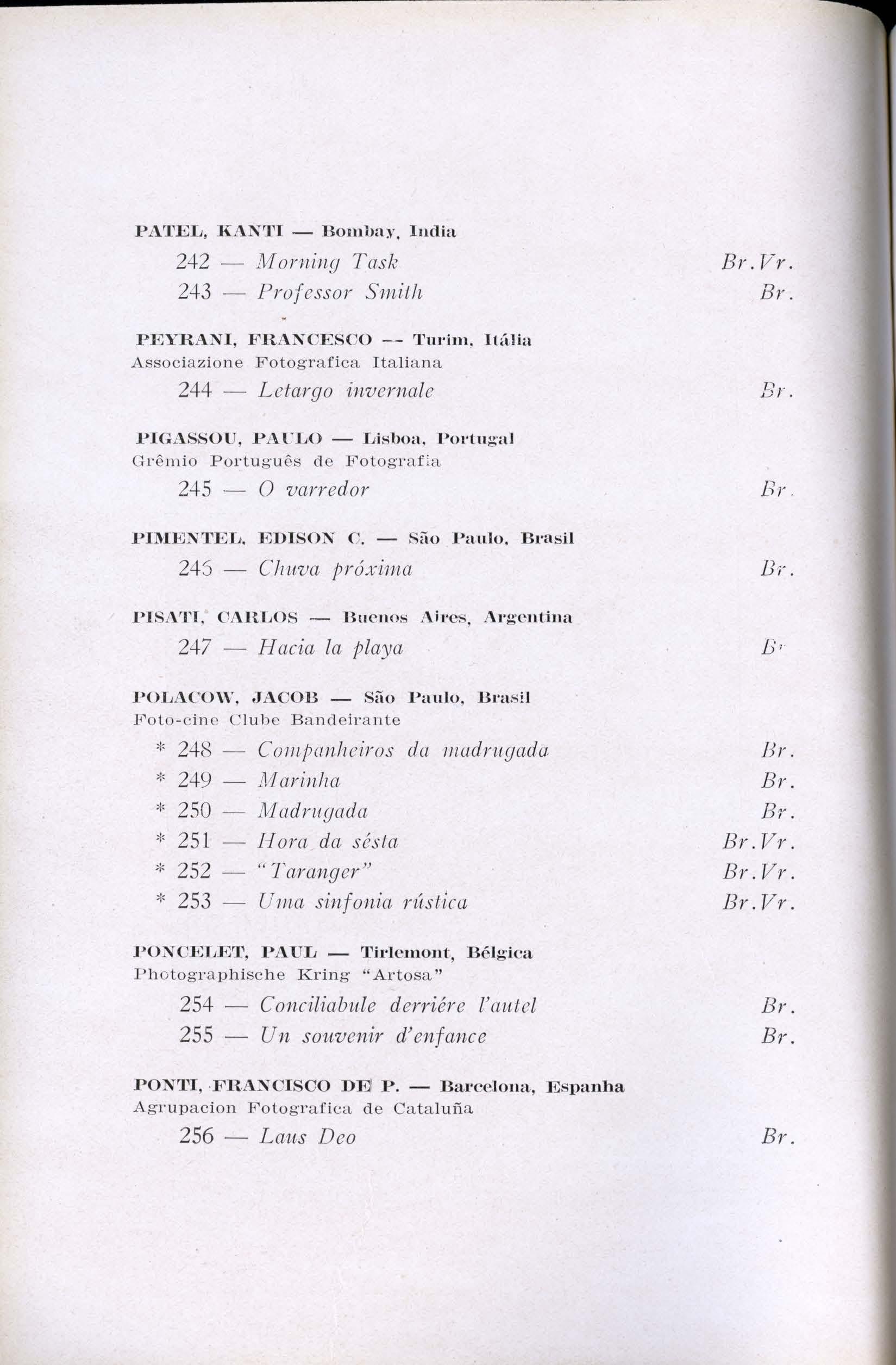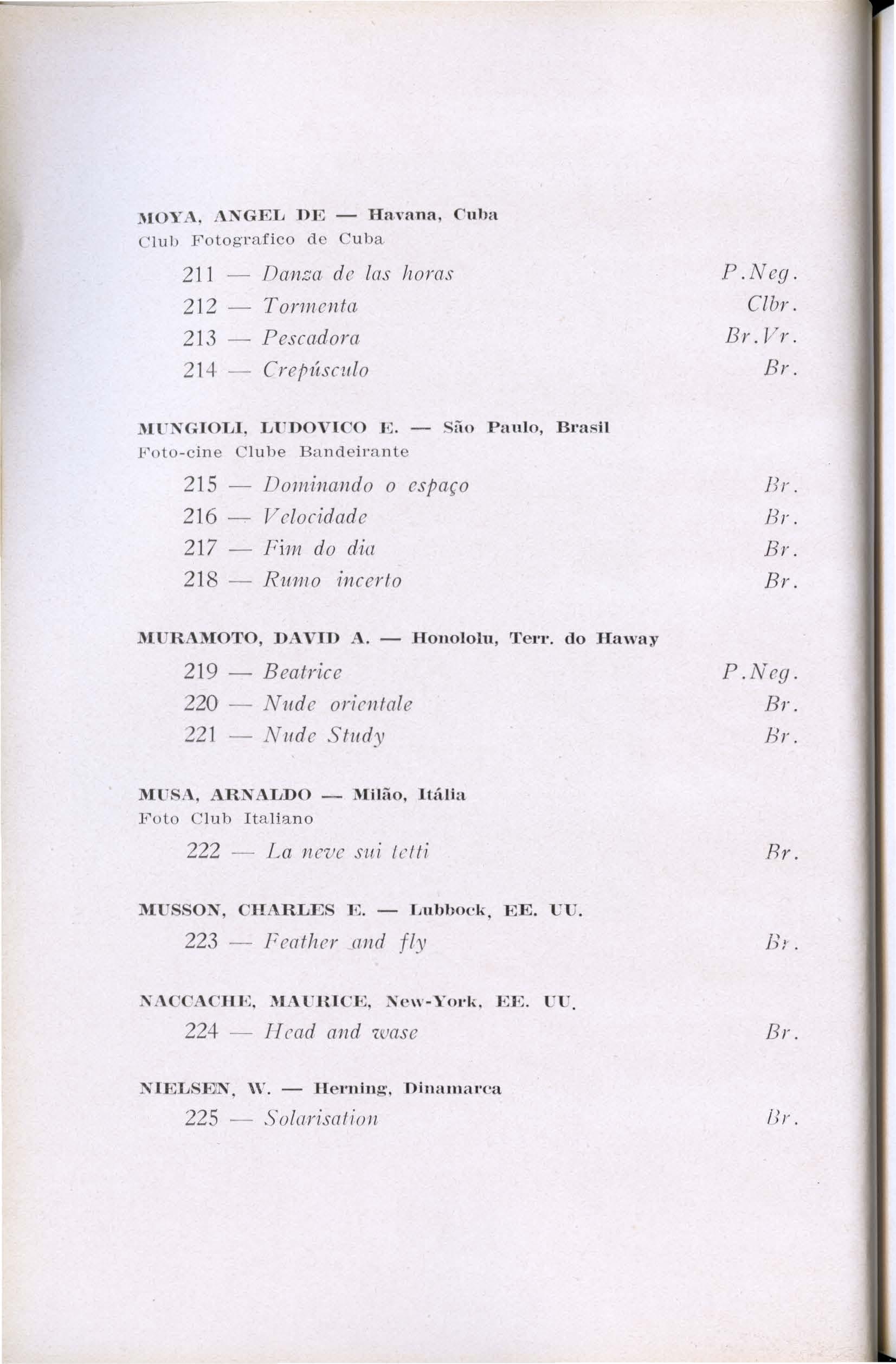 Trabalhos oriundos d e nada 111enosde 2-1paisr>s, refletindo t endê ncias , 11sos C' costumes os mais div ersos , ,nas falando todos 111110únira li11guage111 - a do bélo - acessível a todos r por lodos compreendida, dão-nos uma visão panora111icada arte fotográfica em todo o 11111 do, atte que cada ve::;11'/aisse afirma com características próprias e peculiares, proporcio11ando ao ho111e111a111plase i1llensas possibilidad es para 111ani.fes lar seus sentimentos esté ticos e artísticos.