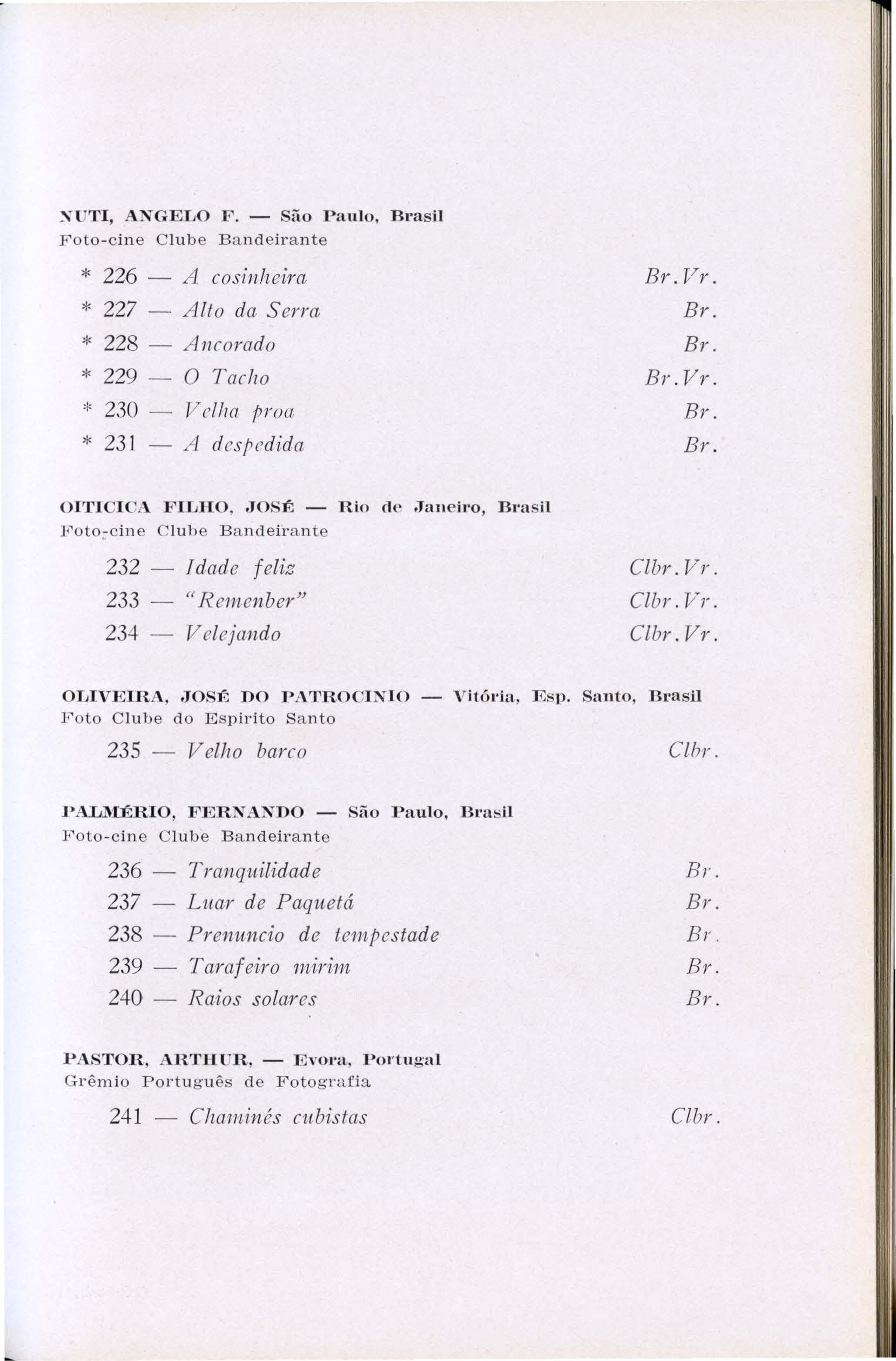 O el eva do 11ú111ero d e concorrentes e traba!/1os inscritos , d emonstra co,n eloqu ência o reno111ee alto conceito q11e, em pouco tem/ Ju, ronq11isto11,o re rta111eorgani:wdo pelo FOTOCTN E CL UBE RANDETRANTE , nos 111ais adiantados centros artísticos e rnlturais d o mundo.