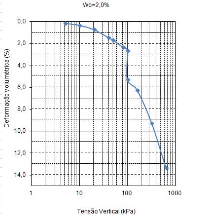 Figura 5. Gráfico: Tensão Vertical x Deformação Volumétrica. - Tensão de inundação 50 kPa