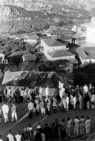 Procissão diante da Basílica de Diamantina, com seminário ao fundo. Fotografia: Eric Hess, s/d. (década de1940).