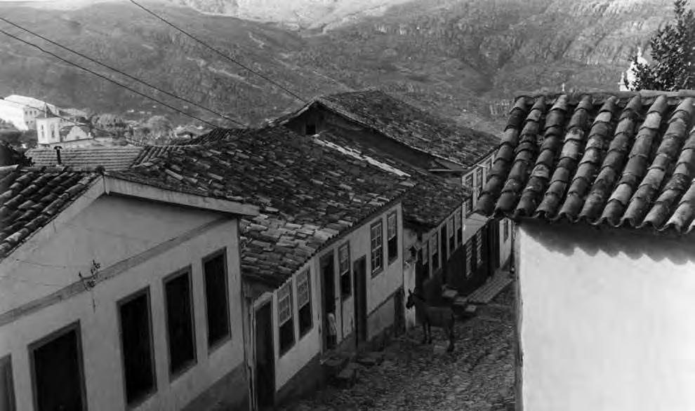 Conjunto de casas próximo à Igreja de S. Francisco de Assis. Ao fundo, a Serra dos Cristais.