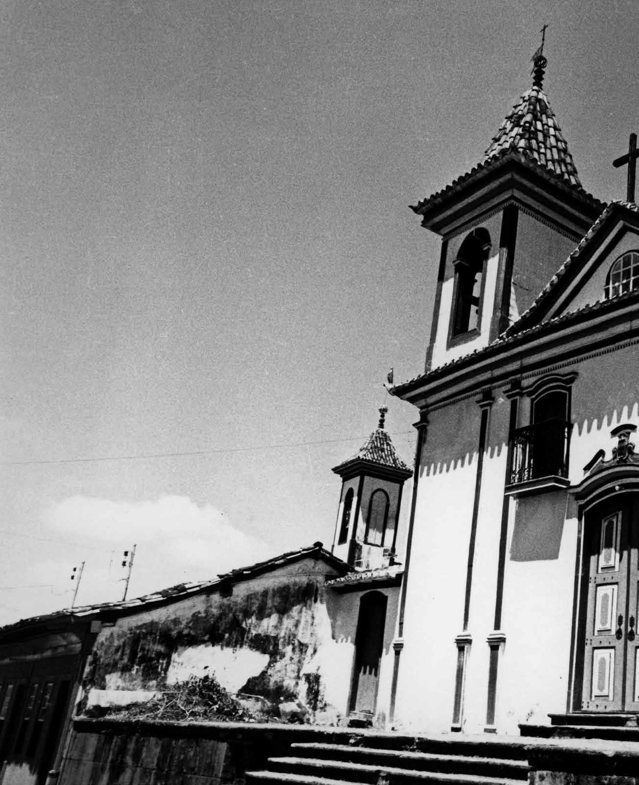 Casario na Rua da Grupiara, com Igreja de N. Sra. das Mercês ao fundo. Fotografia: Noel Saldanha Marinho, 1956.