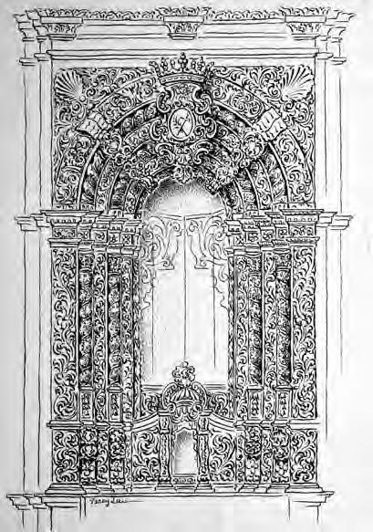 Talha dourada na Igreja de N. Sra. do Carmo. Ilustração: Percy Lau, 1944.