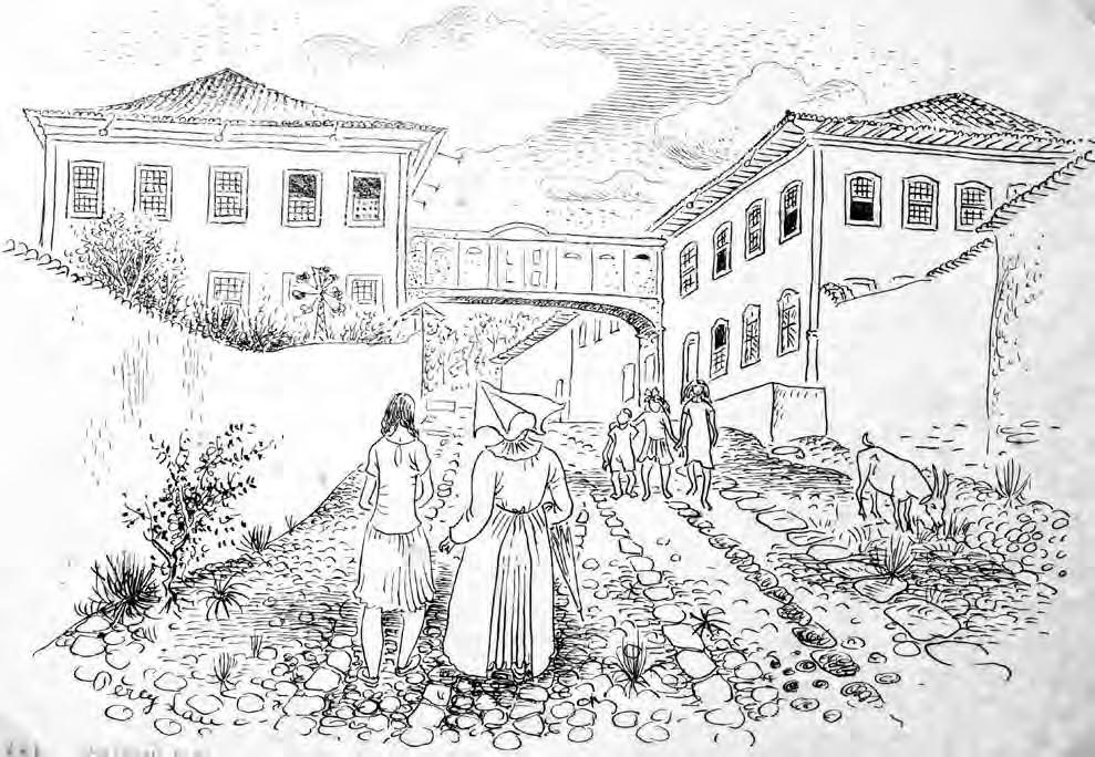 Colégio N. Sra. das Dores, antiga Casa dos Intendentes. Ilustração: Percy Lau, 1944.