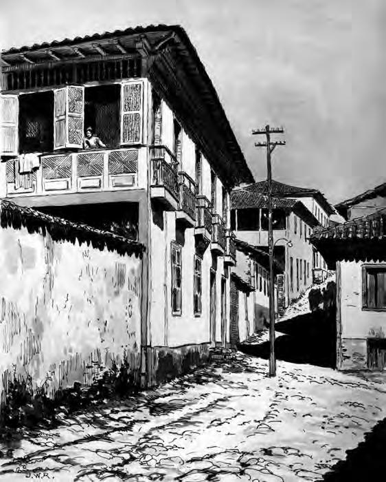 Casario na Rua da Quitanda (então Francisco Sá). Aquarela: José Wasth Rodrigues, 1918.