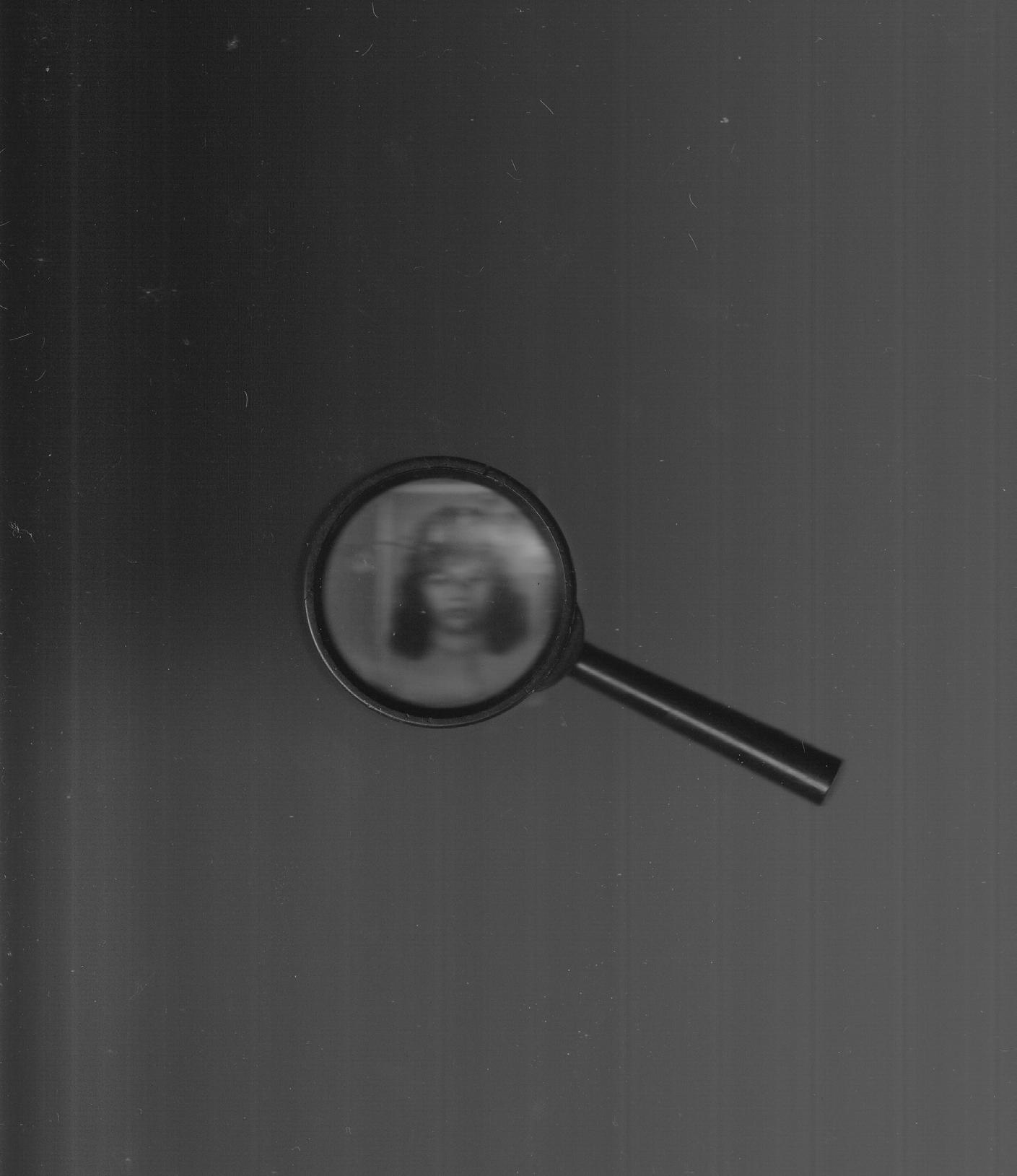 13. A edição em preto e branco mostra, à esquerda, uma planta desfocada por uma lupa (que pertenceu à minha avó). À direita, a lupa sobrepõe o rosto da minha mãe em uma fotografia 3x4.