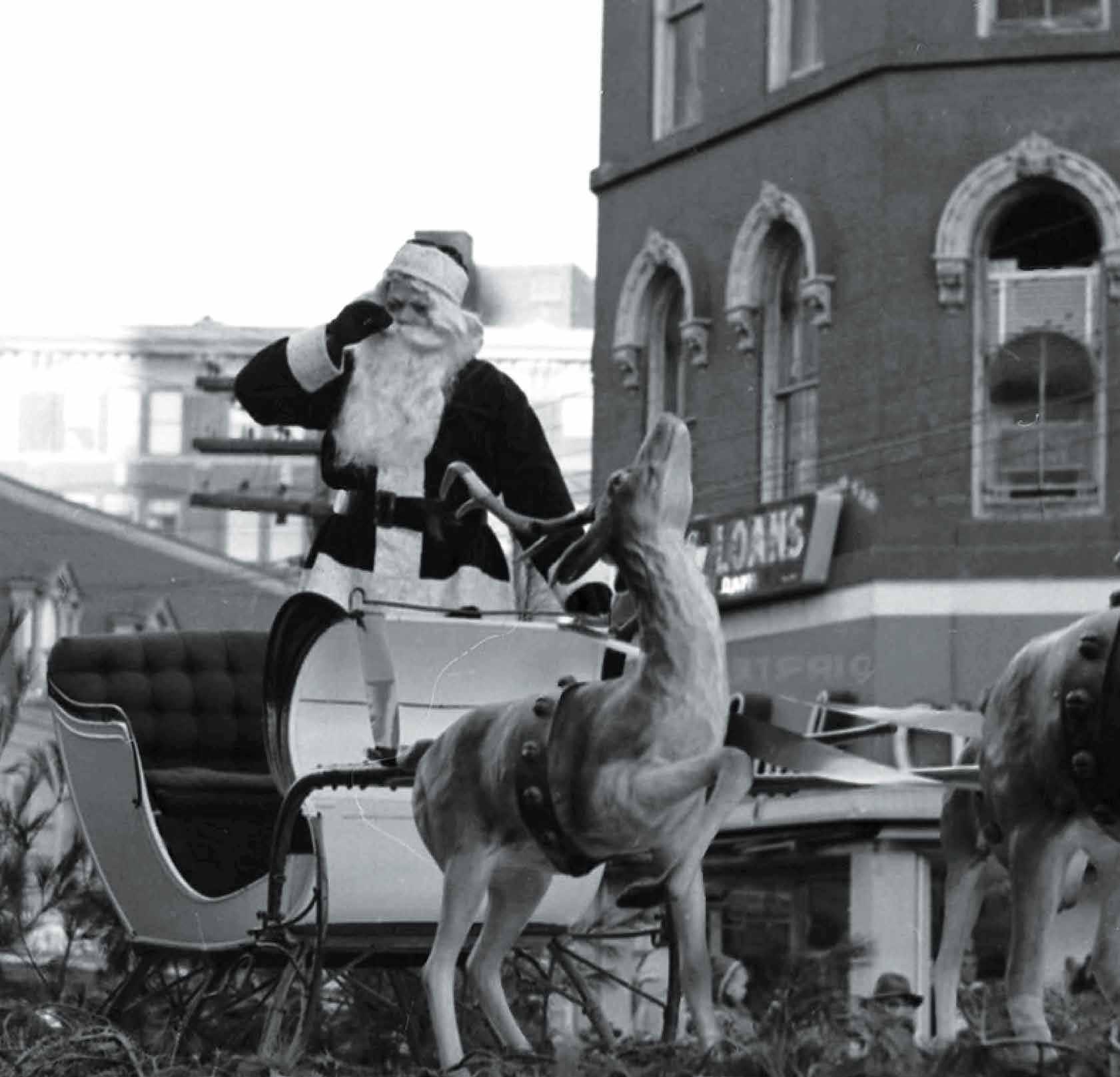 Freese’s Department Store, captured from its Main Street side, went all out in December 1957 with hundreds of flashing holiday decorations.