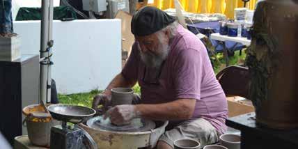 We have a potter throwing & sculpting a special work created during the Maine Lobster Festival, illustrative drawings and paintings by a local artist, jeweler artists working in their medium of choice, Maine wild honey and bees wax products, gourmet jams and salsa, photographs of Maine scenes from the mountains to the sea, photography of birds and animals, fabric artists and designer products from bags to masks, detailed hand painted prints from an artist working in pen & ink, lotions and scents from plants grown here in the state of Maine, hand carved walking sticks, pictures utilizing small beach rocks for medium, alpaca products and yarn, silk screened prints on wood and on cloth, hand painted signs, sculptress’s shaping and forming polymer clay jewelry and ornaments and a designer of wooden painted tide clocks.