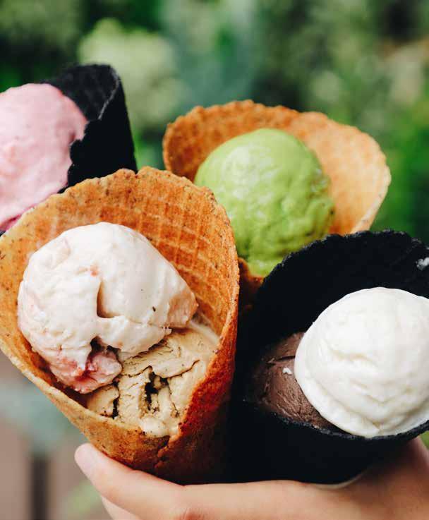 At Dolce Amici in Norway, they offer rotating gelato flavors such as coffee stracciatella and hazelnut made with imported nut paste from Italy. The best-selling gelato at Pugnuts in Surry is “Pug Passion,” which consists of almond gelato swirled with dark Italian chocolate, salted pistachios, and dark Amarena cherries.
