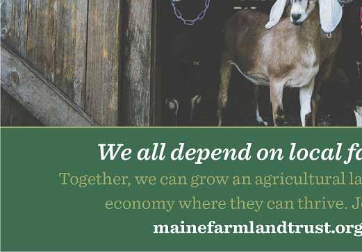 It was an honor to meet with farm owners Joy and Tim Bueschen at Turning Page Farm in Monson, participants in DACF’s Maine Farms for the Future program. Turning Page Farm is a real model of in genuity, passion, and how to build a vi brant agricultural business in Maine. Consider their “Goat School,” which fo cuses on everything you need to know for a successful first year with goats. Farm owners curious to learn more about the program should visit maine.gov/dacf/ ard/business_and_market_development.