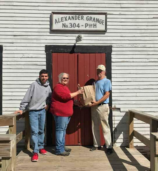 Enter Rhonda Oakes and Alexander Grange #304. Oakes met the Carters through their community involvement, most recently an effort to bring broadband internet to the area. Oakes is the secretary and cheerleader at Grange #304, and the partnership they forged brings fresh fruits and vegetables to older adults in Alexan der and Cooper. While many Grange chap ters have dissolved or lost significant membership, Grange #304 – organized in 1889 – is experiencing membership growth, a testament to its community focus and dedication. They hold regular events for all ages, like summer camp, wreath-mak ing, and hunters’ safety.