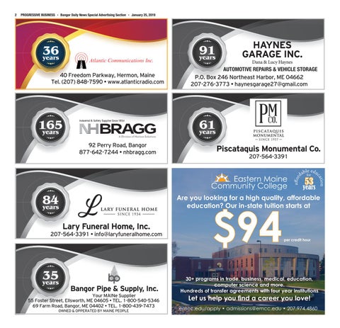 PROGRESSIVE BUSINESS • Bangor Daily News Special Advertising Section • January 25, 2019