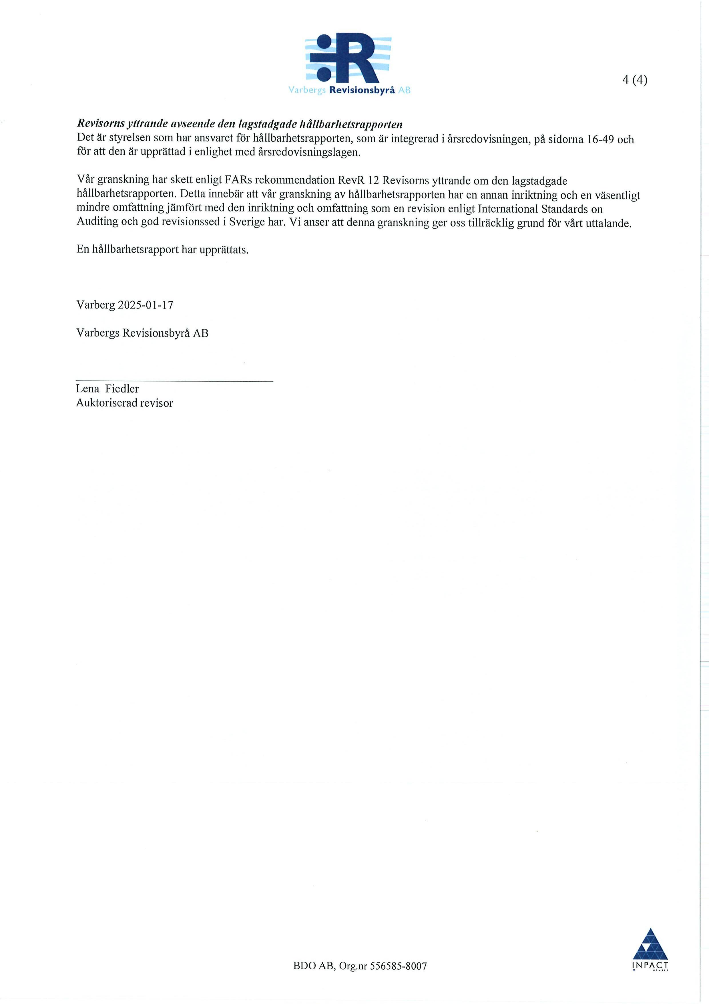 Vår revisionsberättelse har lämnats den 17 januari 2025.