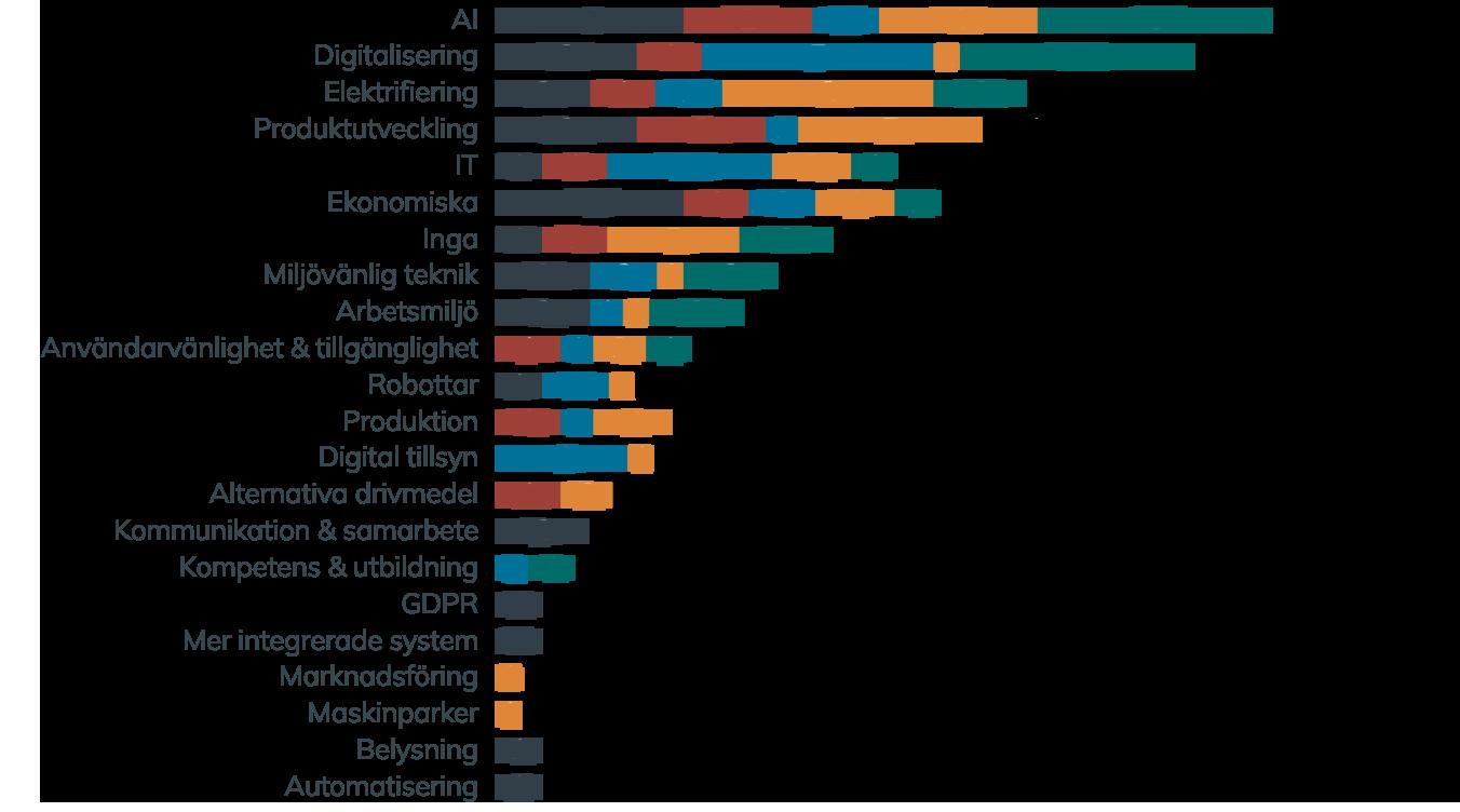 Miljöarbetet, personalfrågor och digitalisering är de mest framträdande områdena som anses behöva förbättras. Det är viktigt för företag att vara medvetna om dessa behov och arbeta proaktivt för att förbättra dessa områden för att nå långsiktig hållbarhet och framgång.