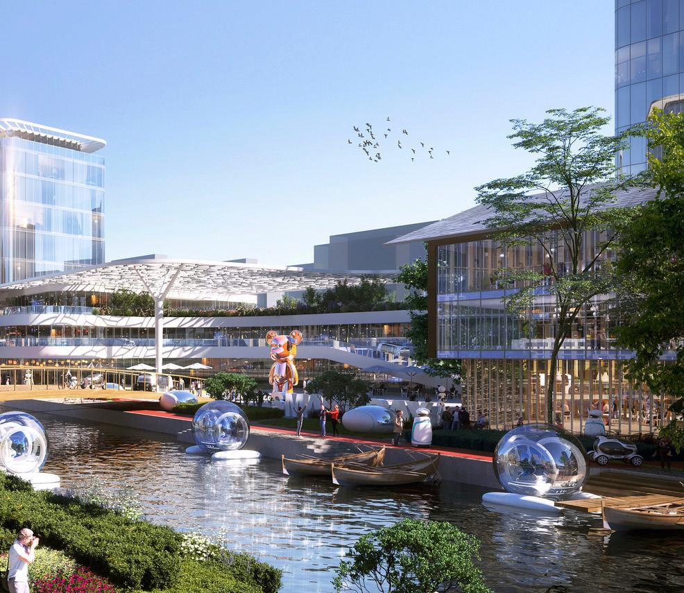 Nuestro plan sigue un enfoque respetuoso con la naturaleza que considera la rica ecología de los densos bosques y los sistemas de agua del entorno. En el norte, estamos creando un centro natural con edificios de pequeña escala y trabajando para incorporar la ecología natural local al emplazamiento. En el sur, los planes incluyen varios edificios a gran escala que contribuirán a crear un horizonte único orientado hacia el centro de Jiading.