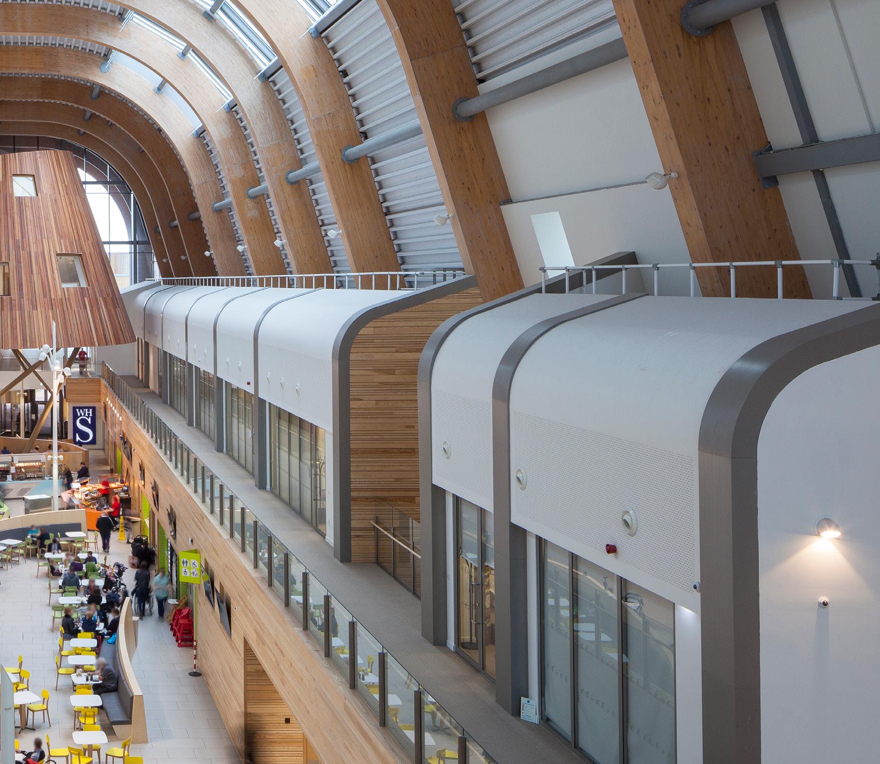 Las modernas instalaciones crean un lugar para la creatividad, el trabajo en equipo, el pensamiento emprendedor y la productividad, diseñadas para atraer a un público joven a través de la modernidad y un limpio nivel de sofisticación, al tiempo que reflejan los 200 años de legado de la universidad. Los principios del diseño biofílico aumentan la tranquilidad y la sensación de bienestar de los estudiantes y el personal.