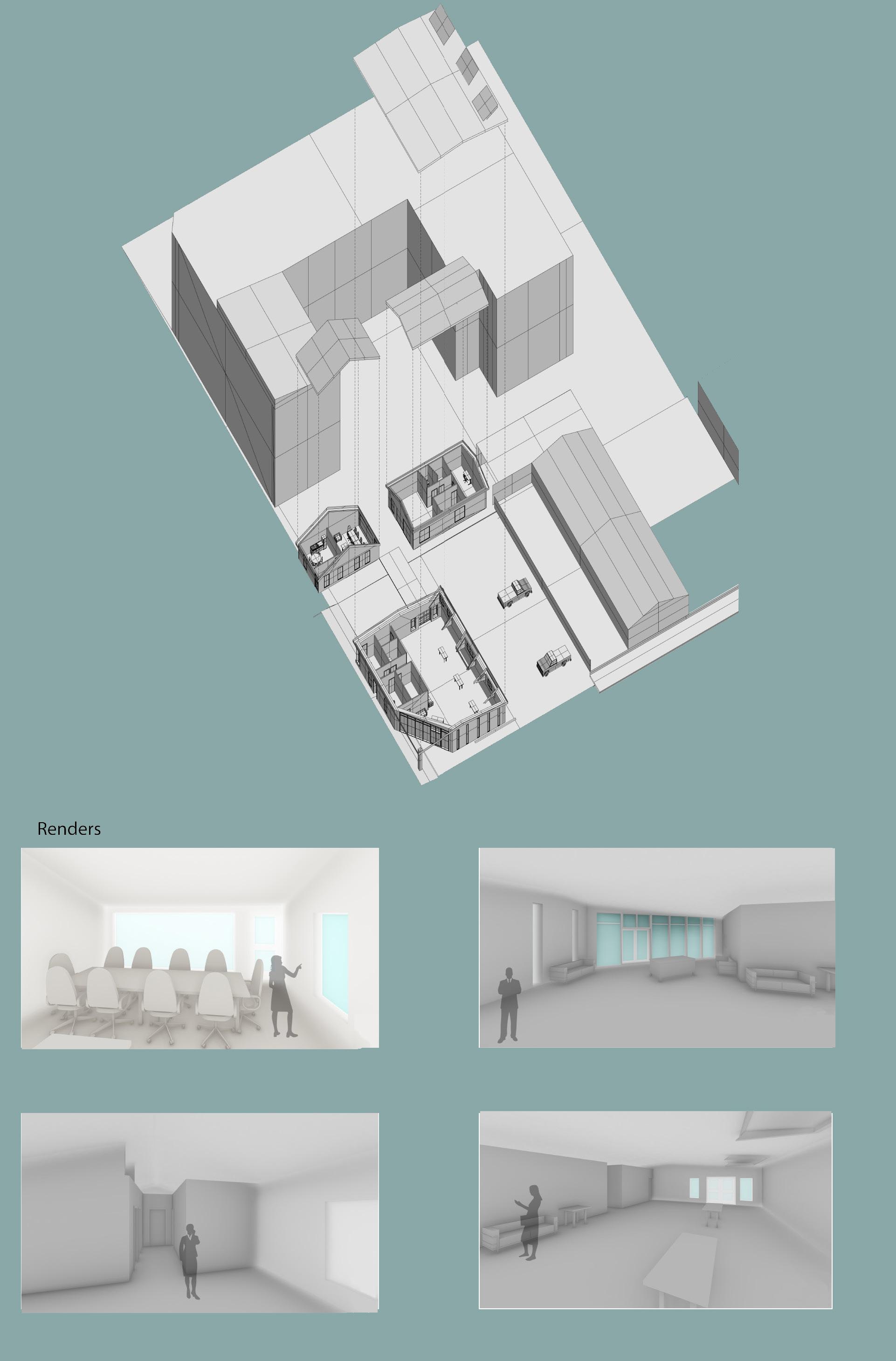 Sketchup, Photoshop, Designed around an existing site with four buildings