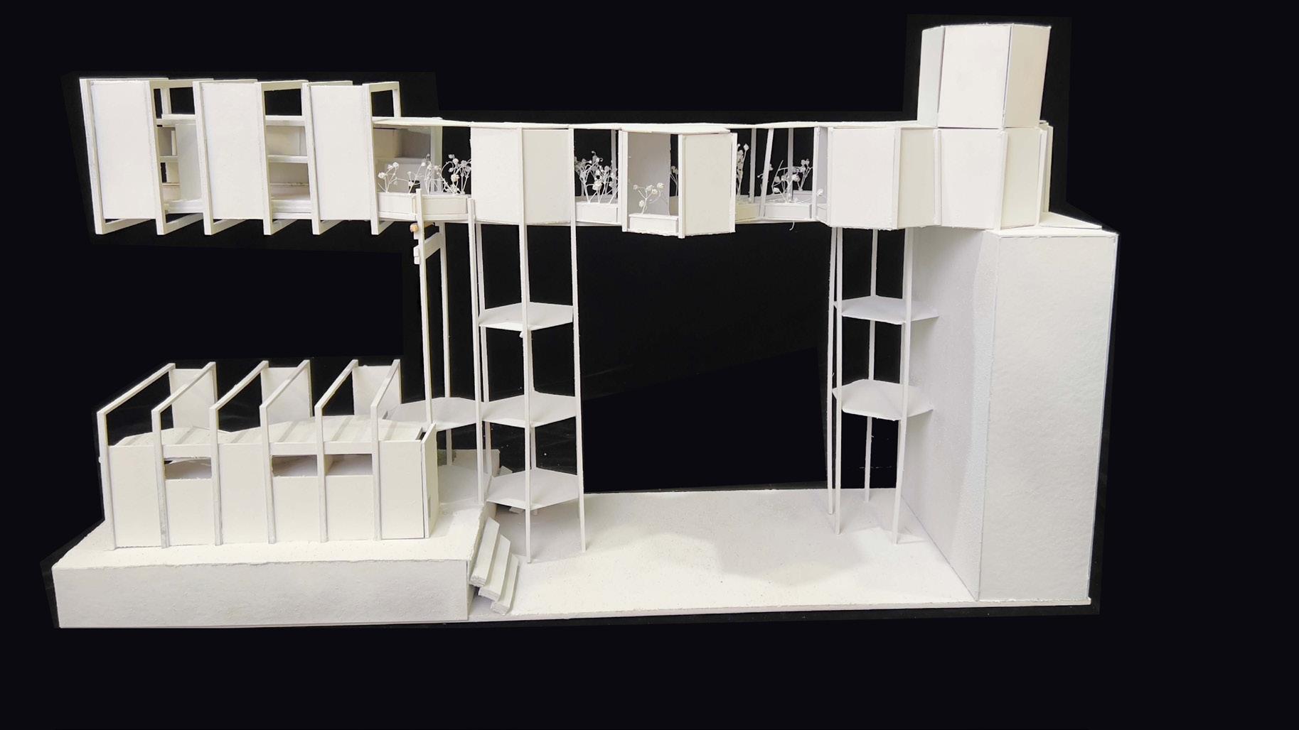 In order to utilize space more efficiently we decided that areas of the urban model would need to serve multiple levels of housing and bridge gaps to better connect the spaces within the program of the re-imagined walking city.
