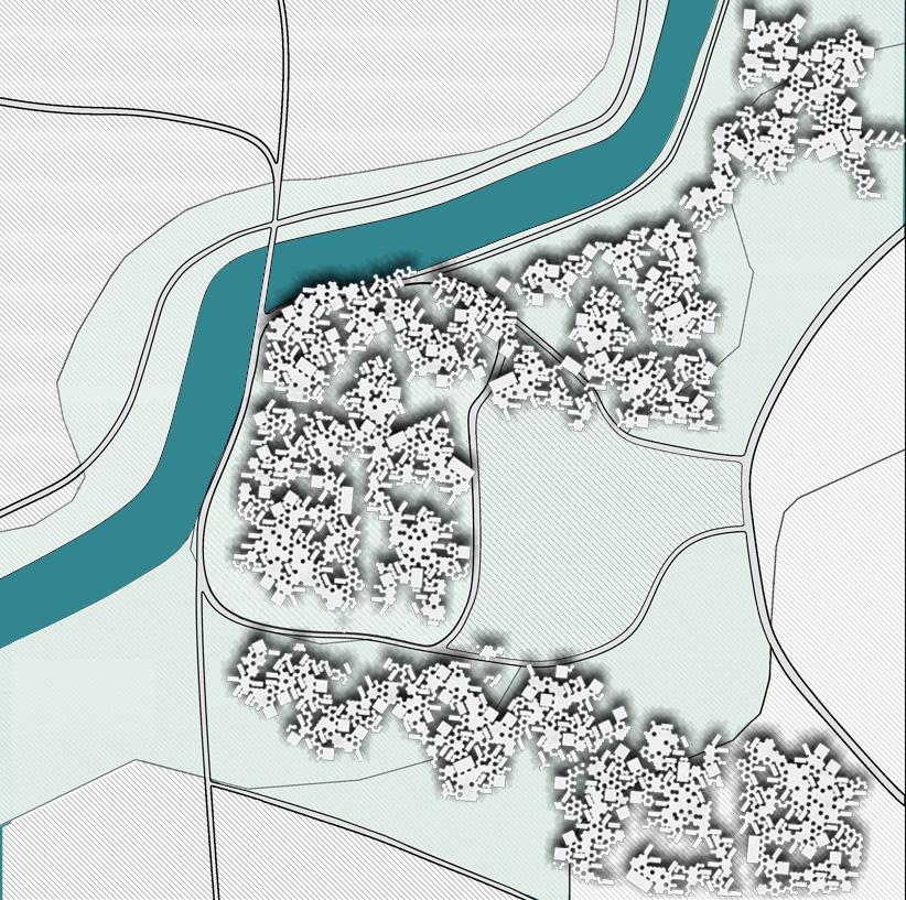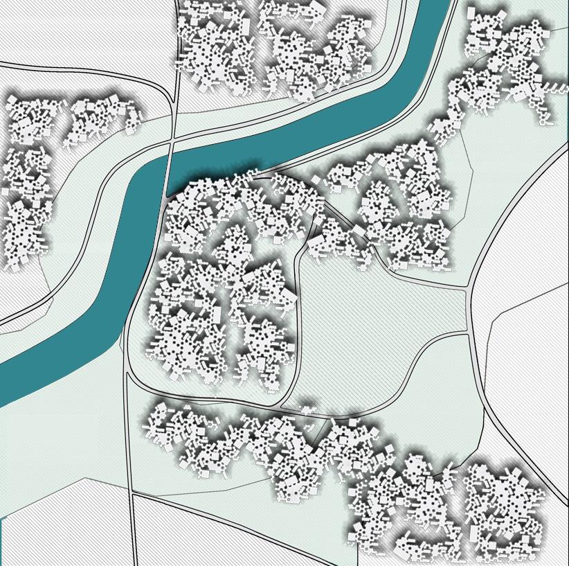 The urban model features several different elevations and program. Some of program is as follows, Algae Towers (energy production), Greenhouses, Commercial & Processing Plants, High Rise Residential, Low Density,Residential, and the foot paths which are implemented through the roof of the greenhouse structures.