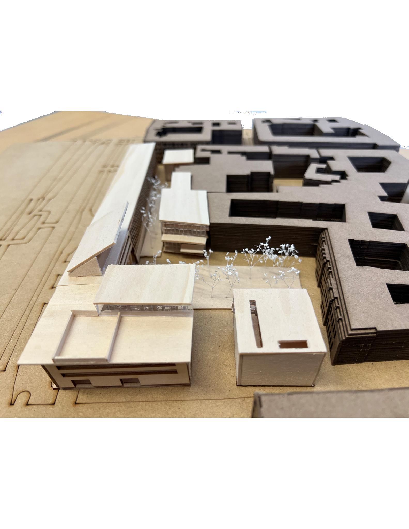To design a series of outdoor courtyards using new and existing building blocks to redefine the context: