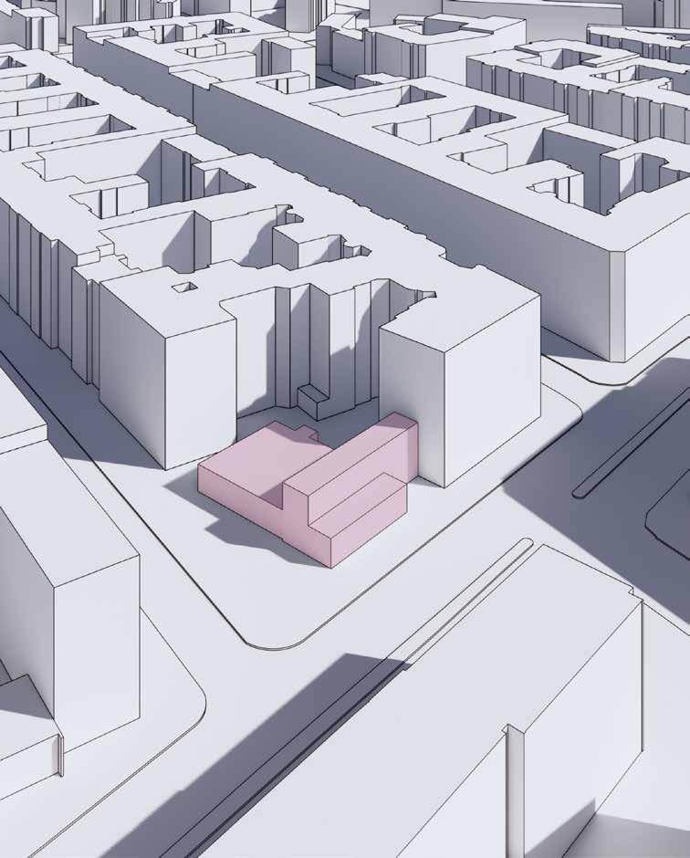 Throughout my involvment in the project, I explored multiple design configurations for a mixeduse residential building. I focused on integrating a contemporary development seemlessly into the historical urban fabric of Wilmersdorf. This explorative process evaluated the most desirable interior layout along with multiple exterior design schemes that compliment the neighboring buildings.