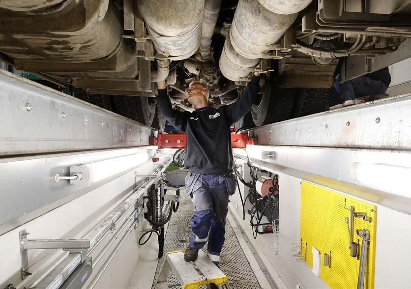 – Att kunna jobba under lastbilarna på det här sättet har förenklat och underlättat vårt arbete väsentligt. Nu kan vi även ta emot fullastade bilar och serva dem snabbt och effektivt året runt, konstaterar servicechef Henrik Gustafsson nöjt.