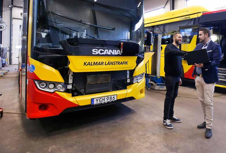 servas med 3 000-milsintervaller och tillsammans med övriga reparationer och förbättringar innebär det att i snitt fem bussar per dag passerar verksta den. All service och alla reparationer rapporteras sedan i ett internt system.