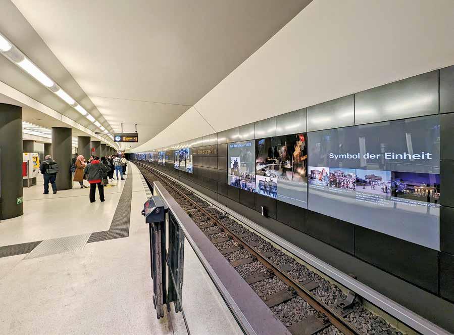 wänden Tafeln einer Dauerausstellung zur Geschichte des Brandenburger Tores. Es sind gleichzeitig auch immer Etappen deutscher Geschichte. Im Treppenzugang sind bekannte Zitate Prominenter zur Mauer zu lesen (zum Beispiel: »Mister Gorbatchev, tear down this wall«/Ronald Reagan). Auf diese Weise ist gewissermaßen eine Gedenkstätte mit Gleisanschluss entstanden.