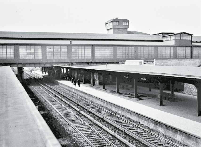 Der von Richard Brademann Ende 1928 entworfene Bahnhof Westkreuz, den Pragher am 18. April 1931 fotografierte, war einer der beiden großen Umsteigebahnhöfe zwischen der Ringbahn und der verlängerten Stadtbahn. Von hier aus führten noch weitere S-Bahnstrecken nach Wannsee und Potsdam bzw. zum Olympiastadion und nach Spandau. Über der Bahnhofshalle thront das Stellwerk.