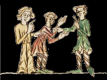 Heidelberger Sachsenspiegel: Die männlichen Wenden sind mit rot-weißem Beinwickeln gekennzeichnet. Sie durften in ihrer Sprache vor Gericht kommunizieren, es wurde übersetzt. Eine vereinheitlichte Sprache gab es noch nicht. Es wurde z. B. Friesisch, Sächsisch, Rheinisch, Fränkisch, Alemannisch oder Bayrisch gesprochen.